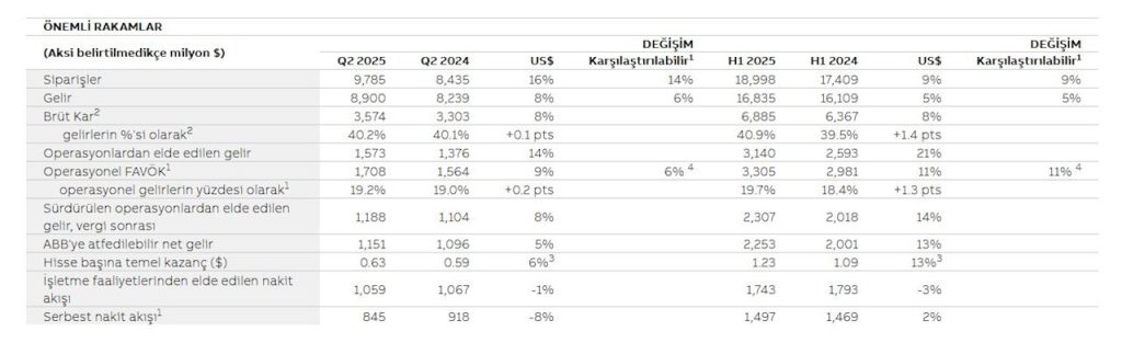 2025 yılının ikinci çeyreğinde elde ettiğimiz sonuçlardan memnunum. Öne çıkan gelişmelerden biri, %16 (karşılaştırılabilir bazda %14) artışla 9,8 milyar dolarlık rekor sipariş alımı oldu. Olumlu gelişmenin dört iş alanının tamamında, müşteri segmentlerinin çoğunda, üç coğrafi bölgenin tamamında ve hem kısa döngülü hem de projeye bağlı işlerde yaygın olarak görülmesi özellikle cesaret vericiydi. Bana göre bu, genel ticaret ortamının sağlamlığını gösteriyor. Sipariş artışı, yaklaşık 600 milyon dolarlık net siparişin kaydedildiği Proses Otomasyonu iş alanında özellikle güçlüydü. Sipariş-satış oranımız 1,10 ile güçlüydü ve özellikle, karşılaştırılabilir sipariş artışını yaklaşık %7 oranında destekleyen belirli büyük siparişler hariç de pozitifti.